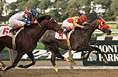 With 1/16 of a mile to go, Cigar was making a move. The crowd was so loud, I couldn't hear Tom Durkin's call. They rushed toward the finish line together, with Cigar gaining with every stride, but Skip Away was still in the lead. They crossed the finish line together and from the angle I was at there was no way to tell who won. It looked like Cigar may have won, but then I saw Skip Away's rider raise his stick in the air in celebration and Bailey quietly rode Cigar to the turn.